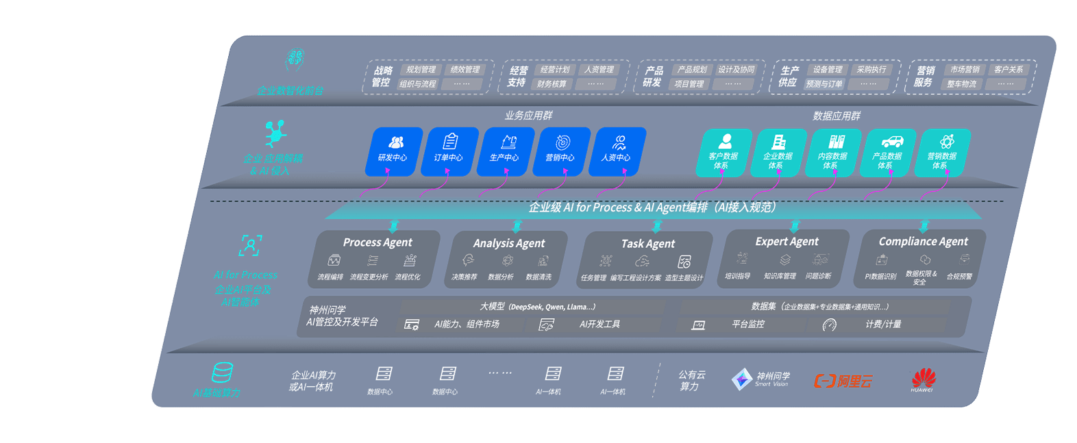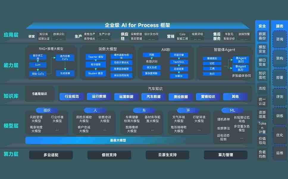 端到端的一站式AI工作空间深度融合了从企业战略规划到日常经营的全流程业务板块,,,定向解决车企内部领域多、、、、部门多、、、链条长、、、场景碎片化等难题,,支持车企快速构建以AI为核心的生产力写作体系,,实现任务执行与AI能力的无缝集成与交互